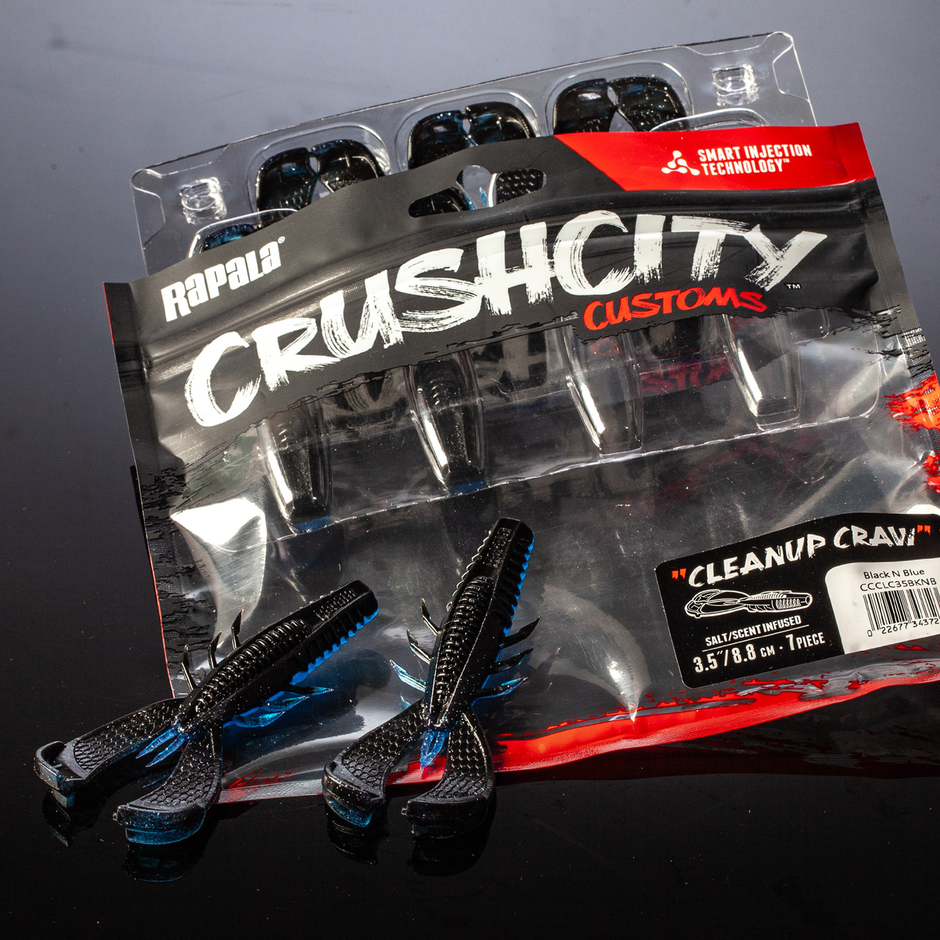 Like all CrushCity™ baits, the Cleanup Craw™ was crafted from the mind of Jacob Wheeler to make his dream craw bait. At 3.5 inches long, the Cleanup Craw™ is the ultimate bass snack. Back ribs allow the angler to rig either side of bait to maximize usage and helps hide hook point. Forward-facing legs provide subtle, secondary action with the slightest movement. Claws provide tight-kicking action.